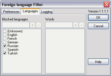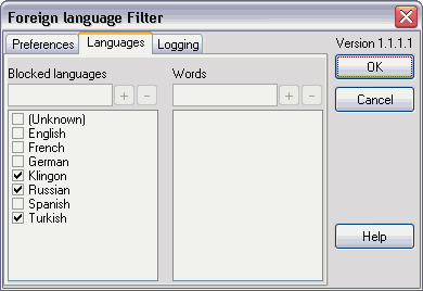 Der Foreign language Filter sucht nach Wörtern in fremden Sprachen.